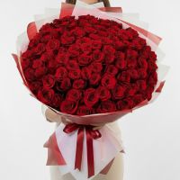 Роскошный букет из 101 красной розы — это эффектное признание в чувствах, которое невозможно забыть. Крупные бутоны насыщенного бордового оттенка, идеально подобранные по высоте и свежести, создают плотную, объемную шапку, а стильное оформление подчеркивает элегантность композиции. Такой букет впечатляет с первого взгляда и производит настоящий «ВАУ‑эффект».