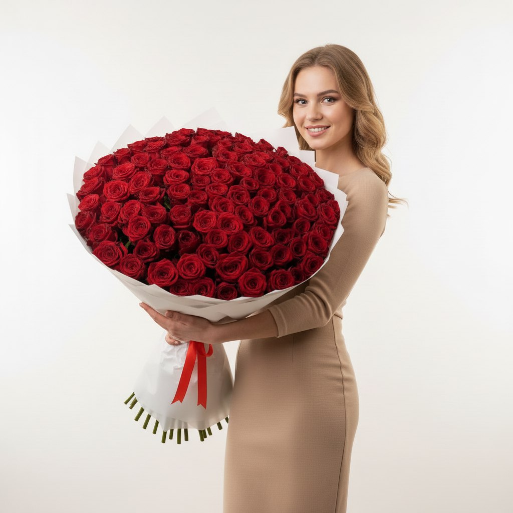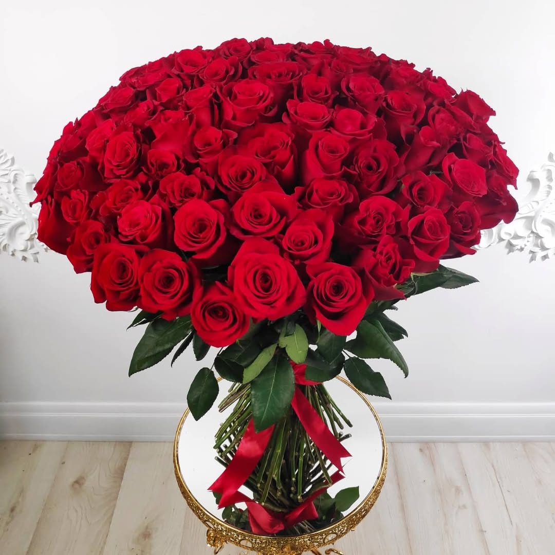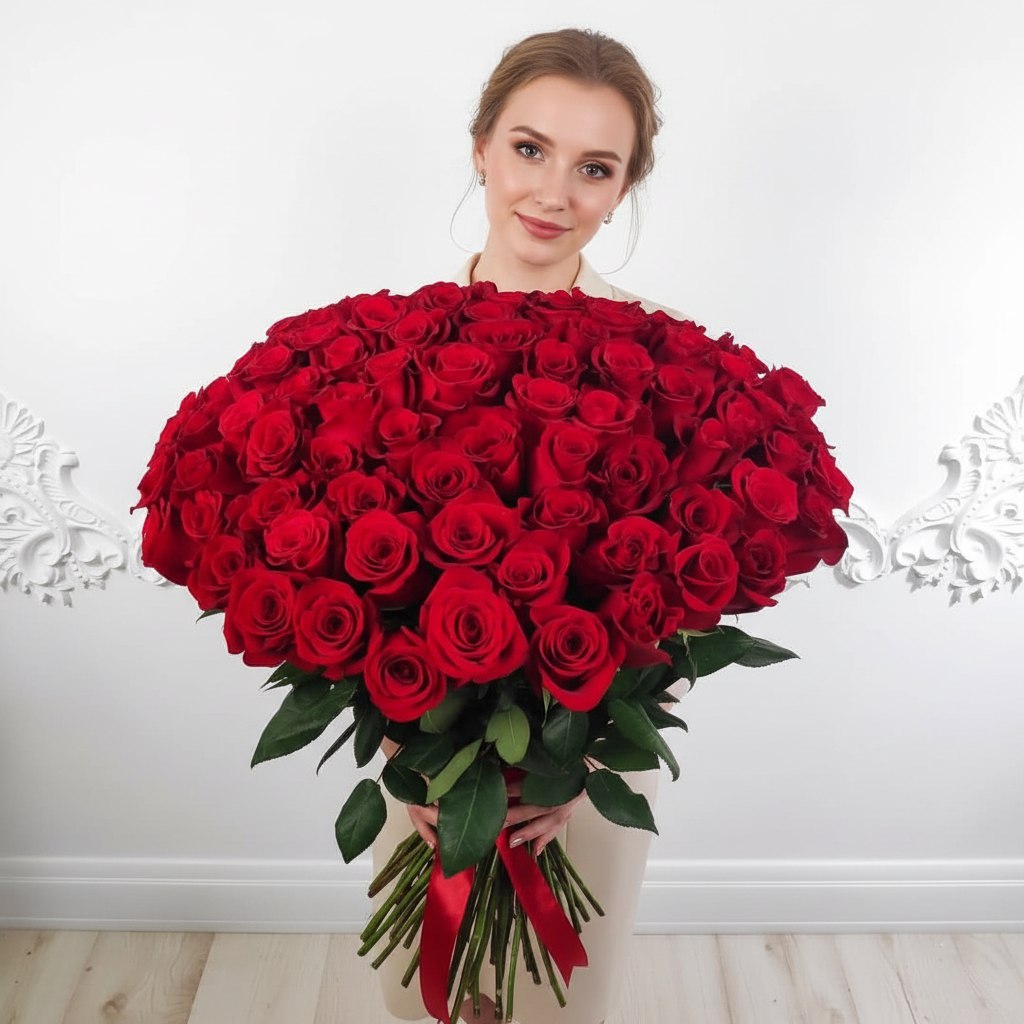 Букет из 101 красной розы высота на выбор от 50см до 80см