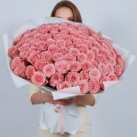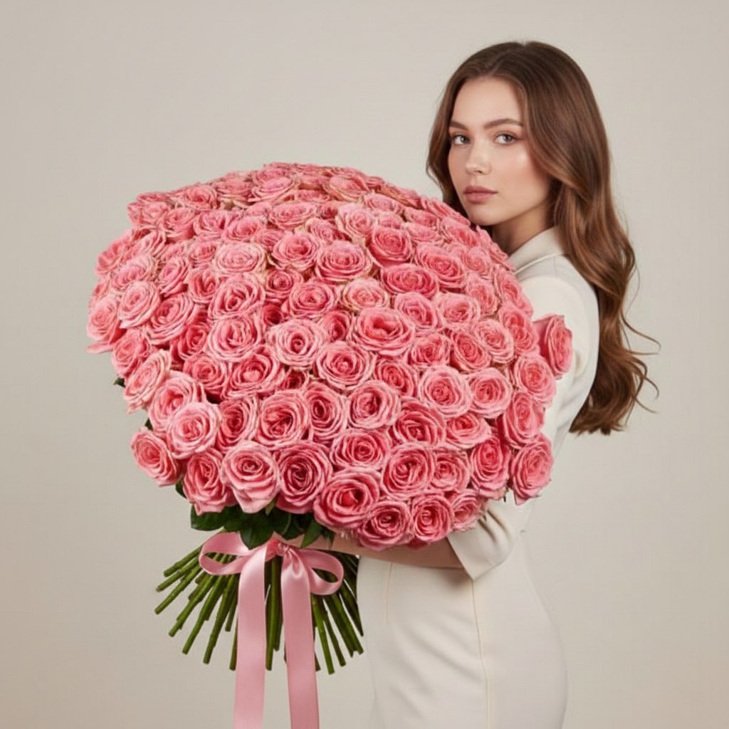 Букет из 101 розы ярко-розового оттенка с крупным бутоном (Высота роз: 60см)
