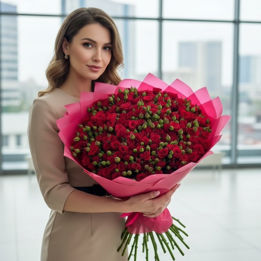 Если вас интересует другое количество цветов (Высота, цвет, оформление букета), обращайтесь к оператору в WhatsApp. Вам с радостью помогут в выборе букета и оформлении заказа.